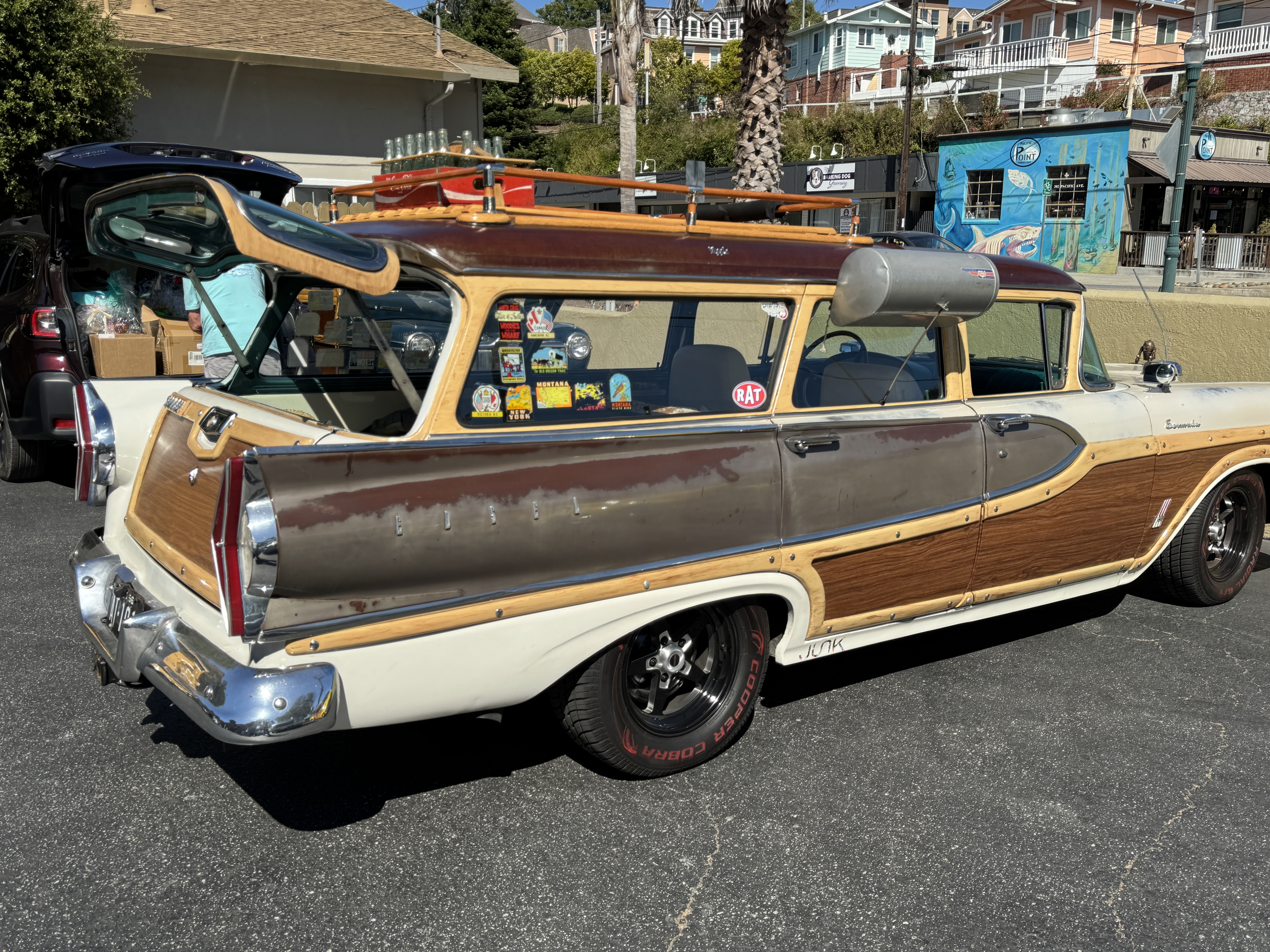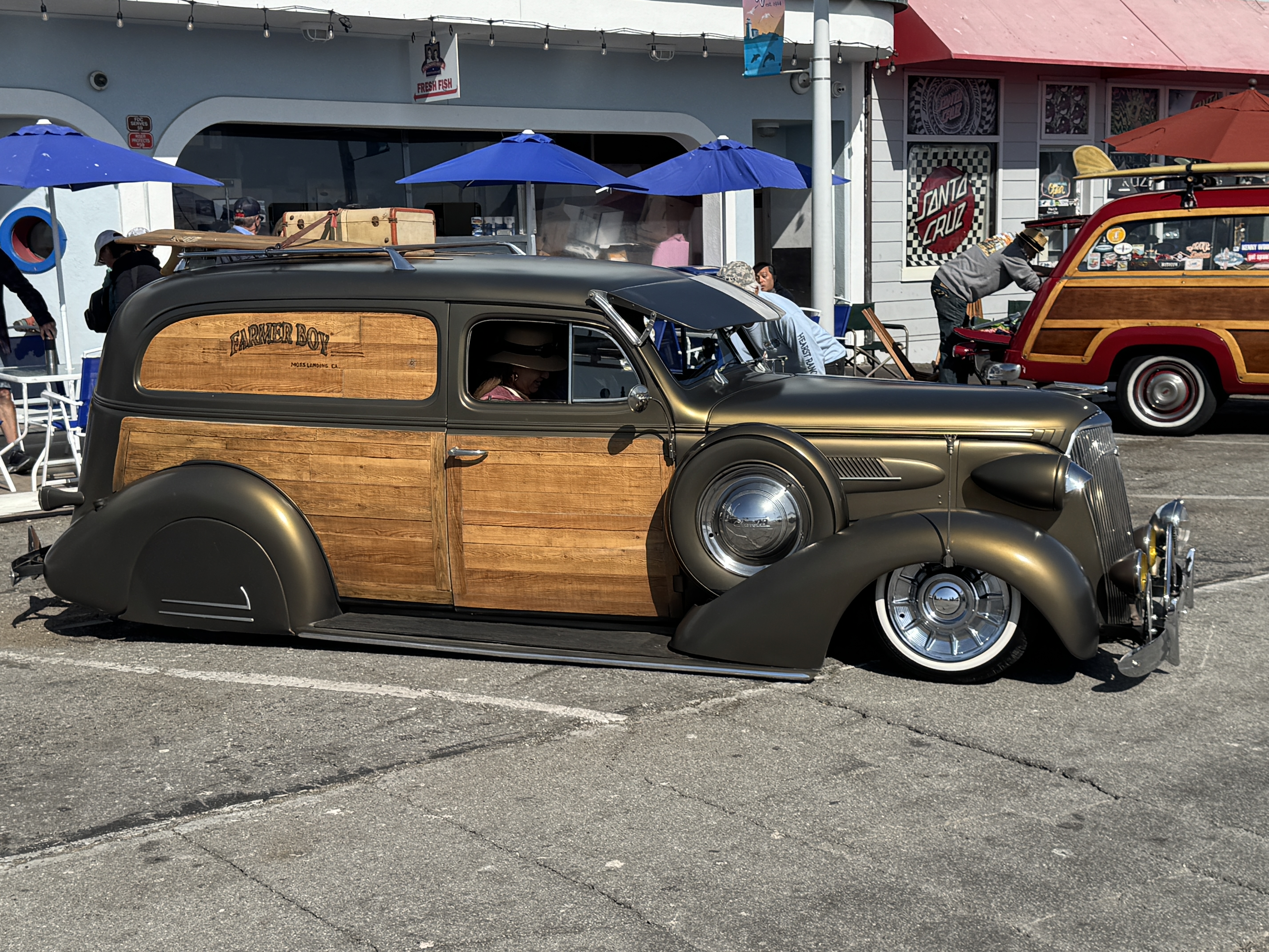 It was a big weekend for Woodies on the Wharf 2025. There were lots of events to check out starting on Thursday with a welcoming party for the woodie owners. Friday morning it was the Open House Breakfast and Paddle Out at Pleasure Point. Friday afternoon it was the pool side welcoming party at the Ocean Pacific Lodge followed by the Wackey-Tacky Hawaiian Shirt & Mumu Contest. Saturday was the big show on the Wharf followed by the Tailgate Party at the Ocean Pacific Lodge. Sunday’s event was Sophia’s Sunday Morning Woodie Cruise out along West Cliff drive. It was another great 4 day event!